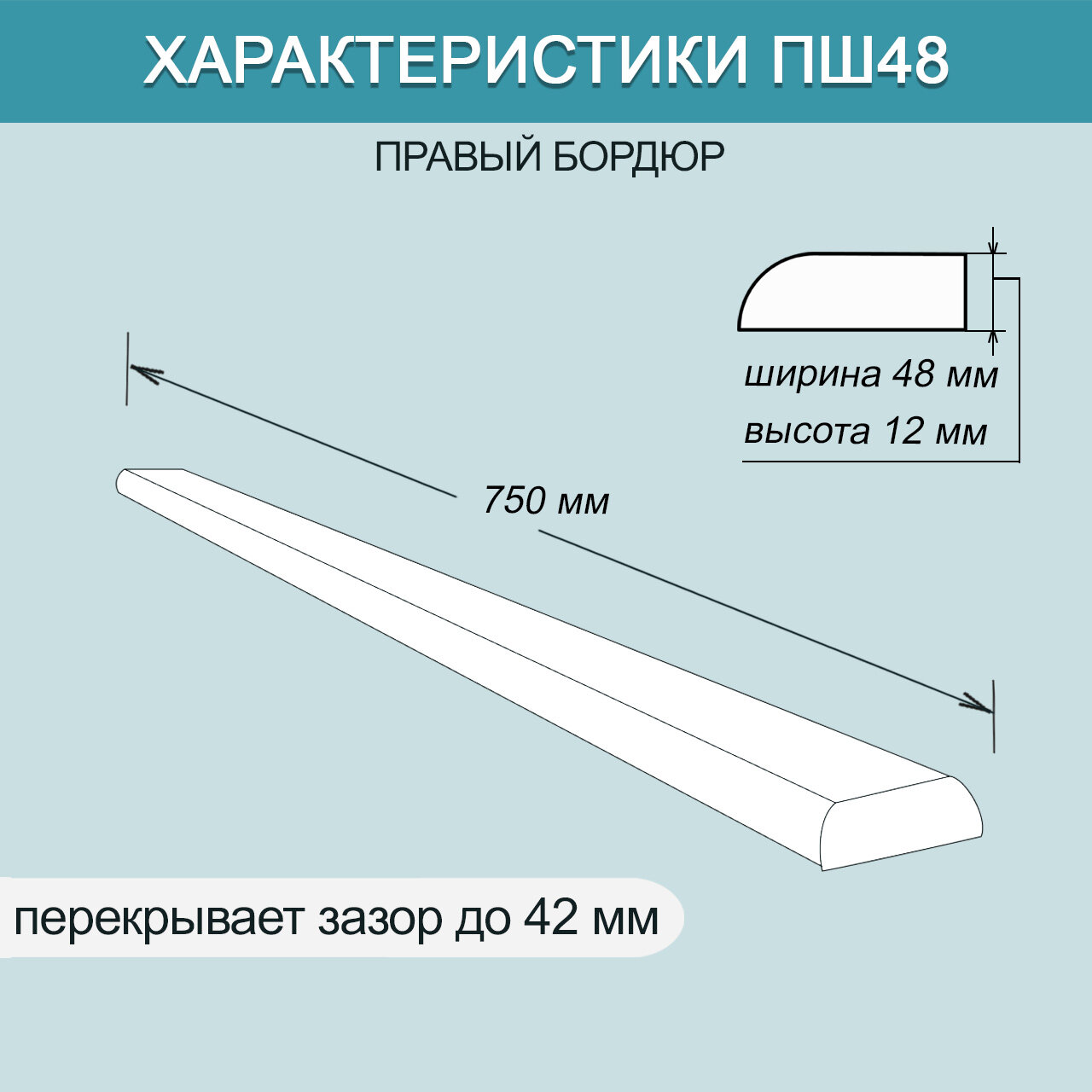 СохранитьАкриловый плинтус бордюр для ванны BNV ПШ48 75 сантиметров, правая сторона, белый цвет, глянцевая поверхность интересное: