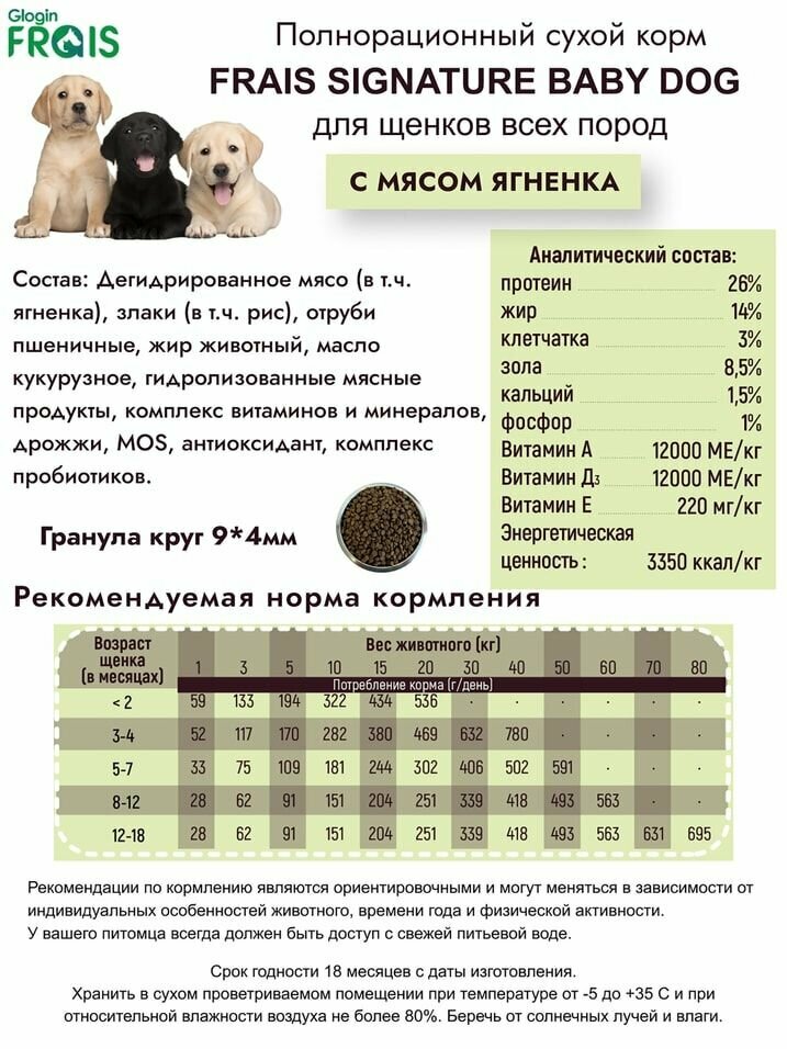 FRAIS 3кг Корм для щенков средних и крупных пород с мясом ягненка интересное: