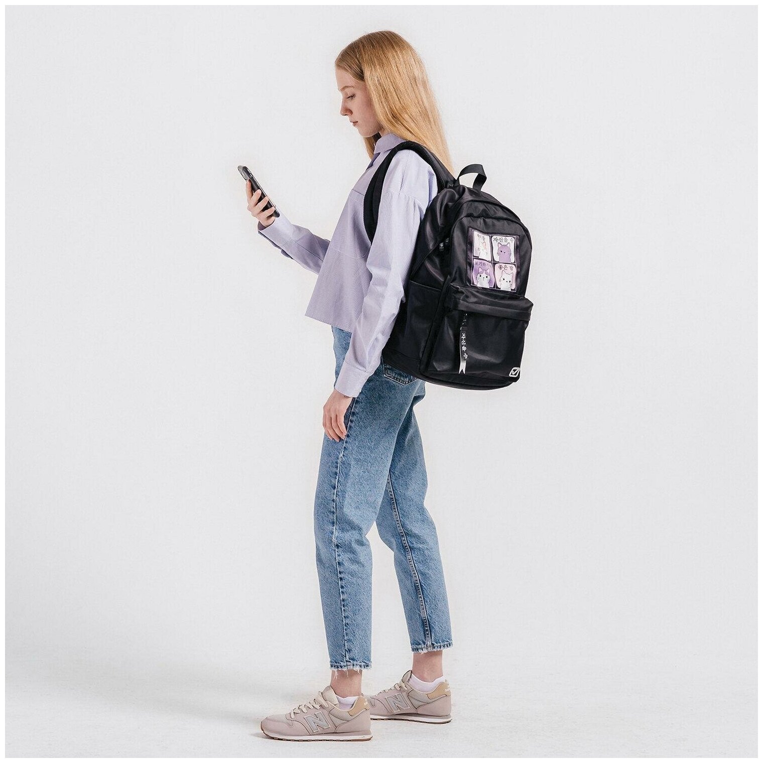 Рюкзак BRAUBERG (брауберг) FASHION CITY универсальный, карман-антивор, Anime Cats, черный, 44х31х16 см, 229965