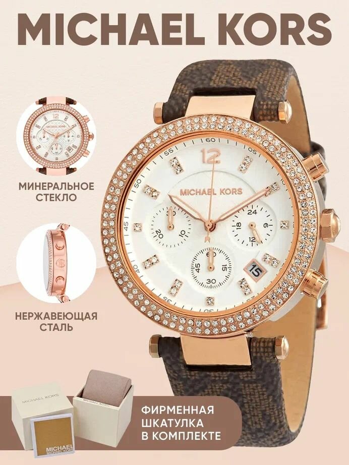 Женские Часы наручные Michael Kors коричневые со стразами интересное: