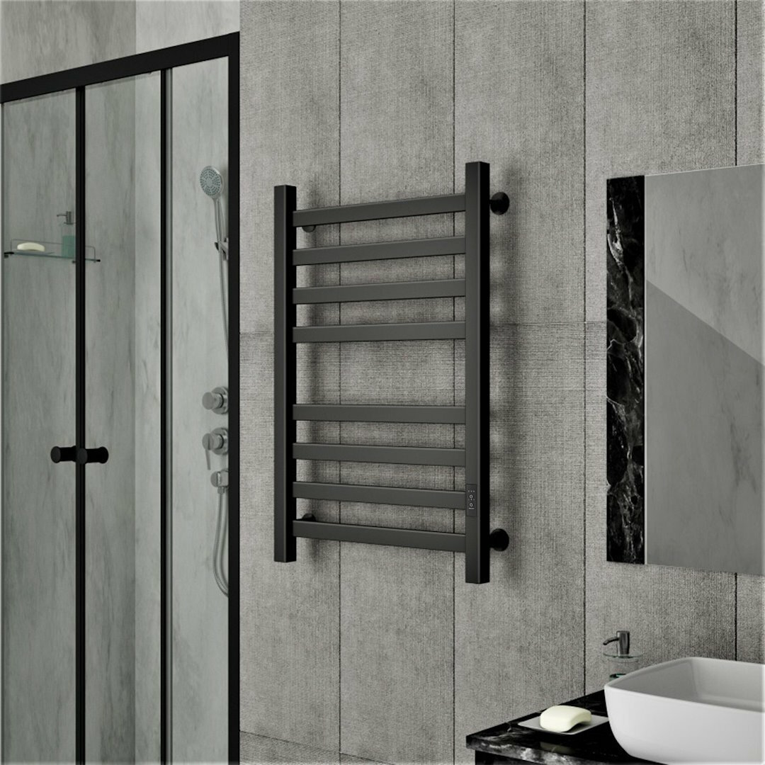 Купить Полотенцесушитель электрический Маргроид Хелми (ВхШ) 80х50, П(4+4) профильный, с таймером, правое подключение, черный матовый