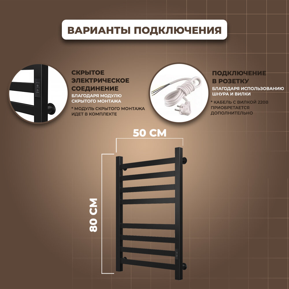 Полотенцесушитель электрический Маргроид Хелми (ВхШ) 80х50, П(4+4) профильный, с таймером, правое подключение, черный матовый интересное: