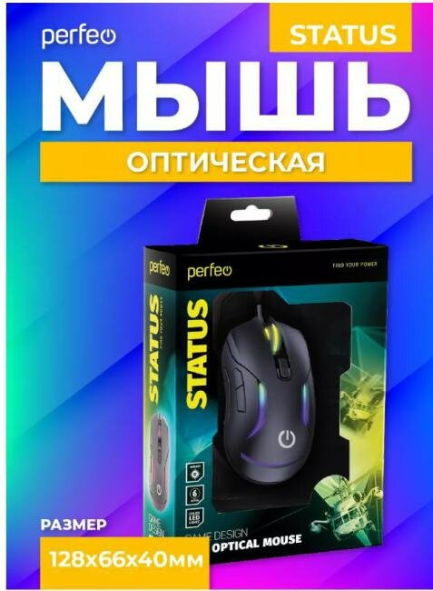 Мышь оптическая Perfeo "STATUS", 6 кн, USB, чёрн. интересное: