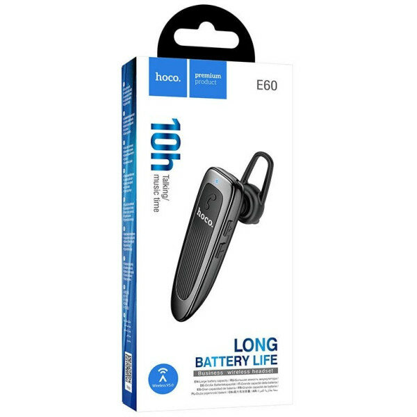 Беспроводная Bluetooth гарнитура для телефона HOCO E60 Brightness business, Bluetooth V5.0, черный