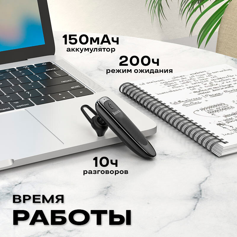 Гарнитура Bluetooth для телефона на ухо с микрофоном Hoco интересное: