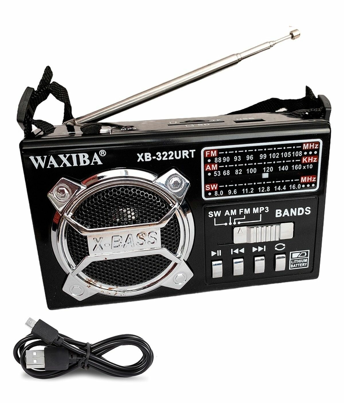 | Дополнительная информация | Радиоприемник XB-322URT WAXIBA, переносной с телескопической антенной для FM-радио, цифровой музыкальный проигрыватель с картой памяти и USB |