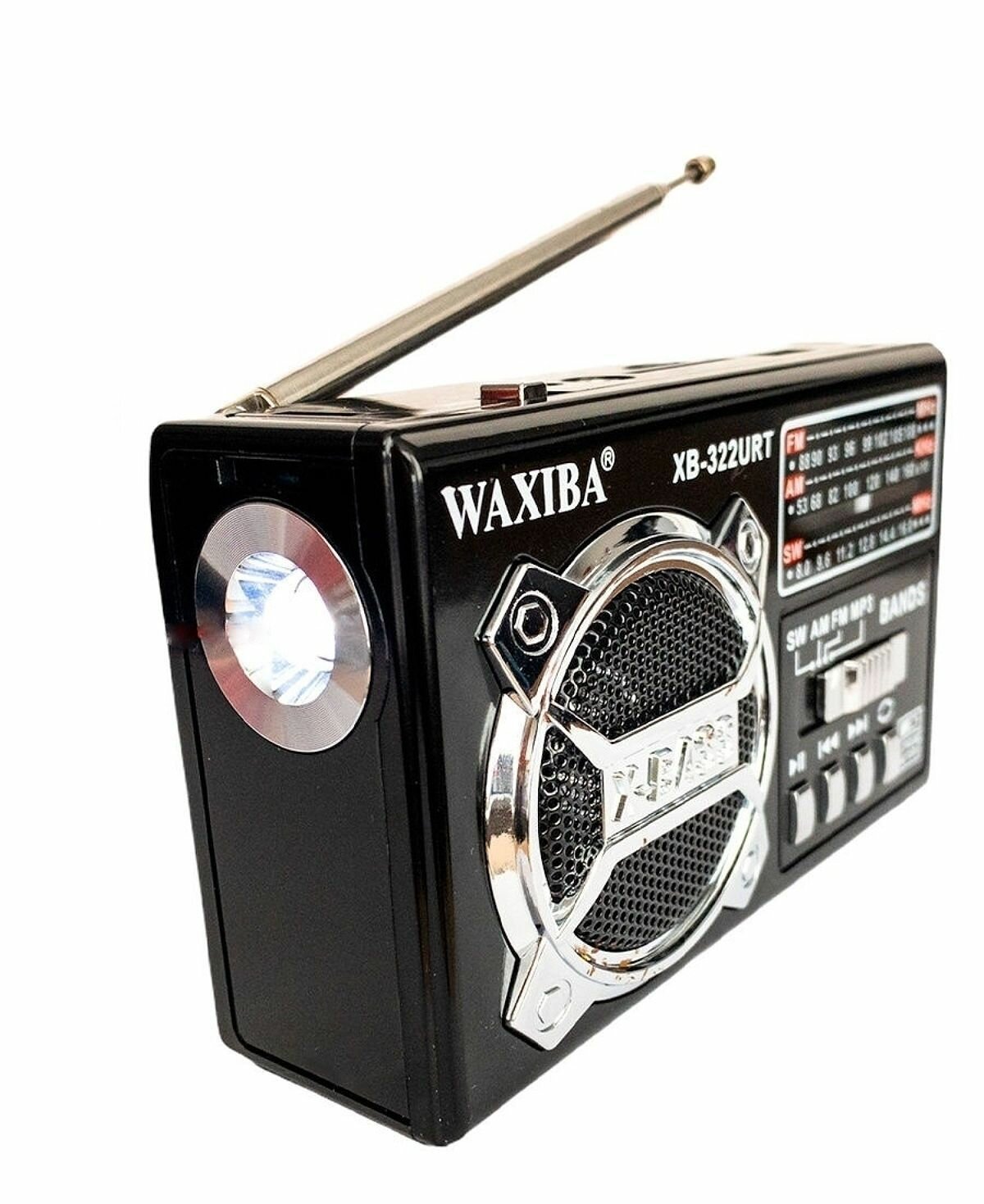 Радиоприемник Waxiba XB-322URT (черный) с фонариком LED Micro SD USB Радио FM AM SW MP3 / Прихвати с собой в поход, путешествие, баню, пикник