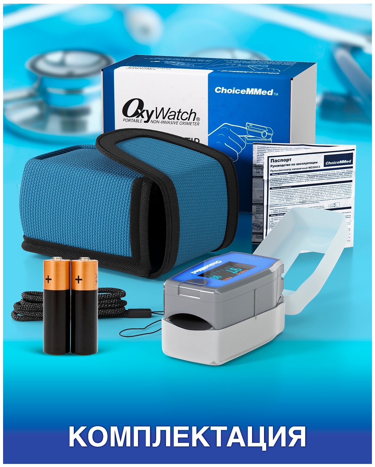 | Отзыв: | Хорошая комплектация. Чехол на ремень, ремешок и чехол силиконовый на сам пульсоксиметр |