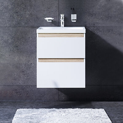 | Дополнительная информация | система мягкого закрывания: Soft Close; органайзер в первом ящике; внутреннее покрытие каждого ящика выполнено в цвете Anthracite, имеет противоскользящее покрытие; размер раковины 55*45*17,5 см |