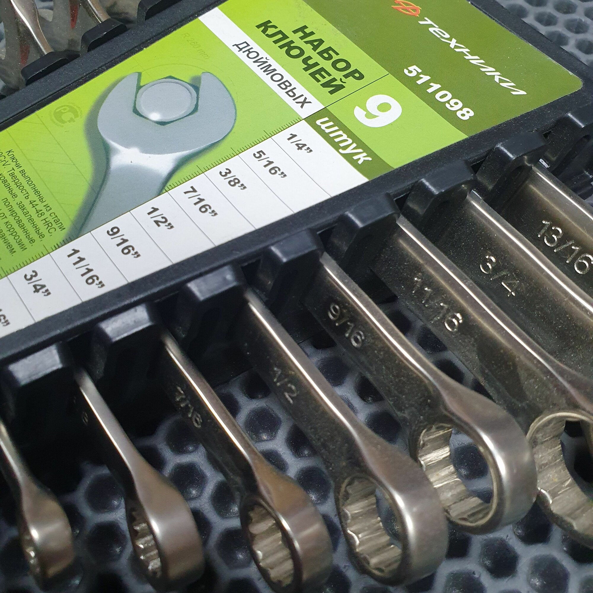 | Гаечные ключи подробно | комбинированные ключи: 1/4", 5/16", 3/8" 7/16", 1/2", 9/16", 11/16", 3/4", 3/16" |