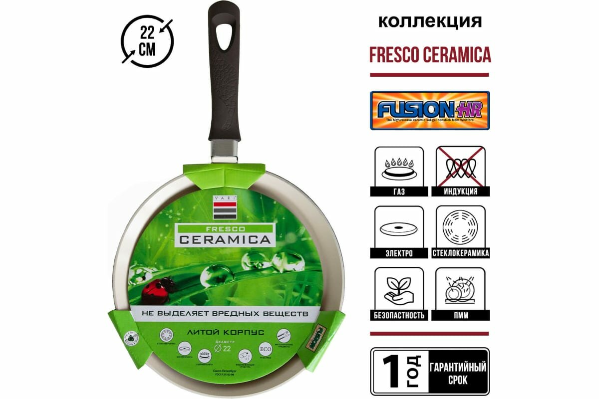 Сковорода блинная литая VARI FRESCO CERAMICA, 24 см, с керамическим покрытием из безопасного пищевого алюминия и жаропрочной бакелитовой ручкой , можно мыть в посудомоечной машине