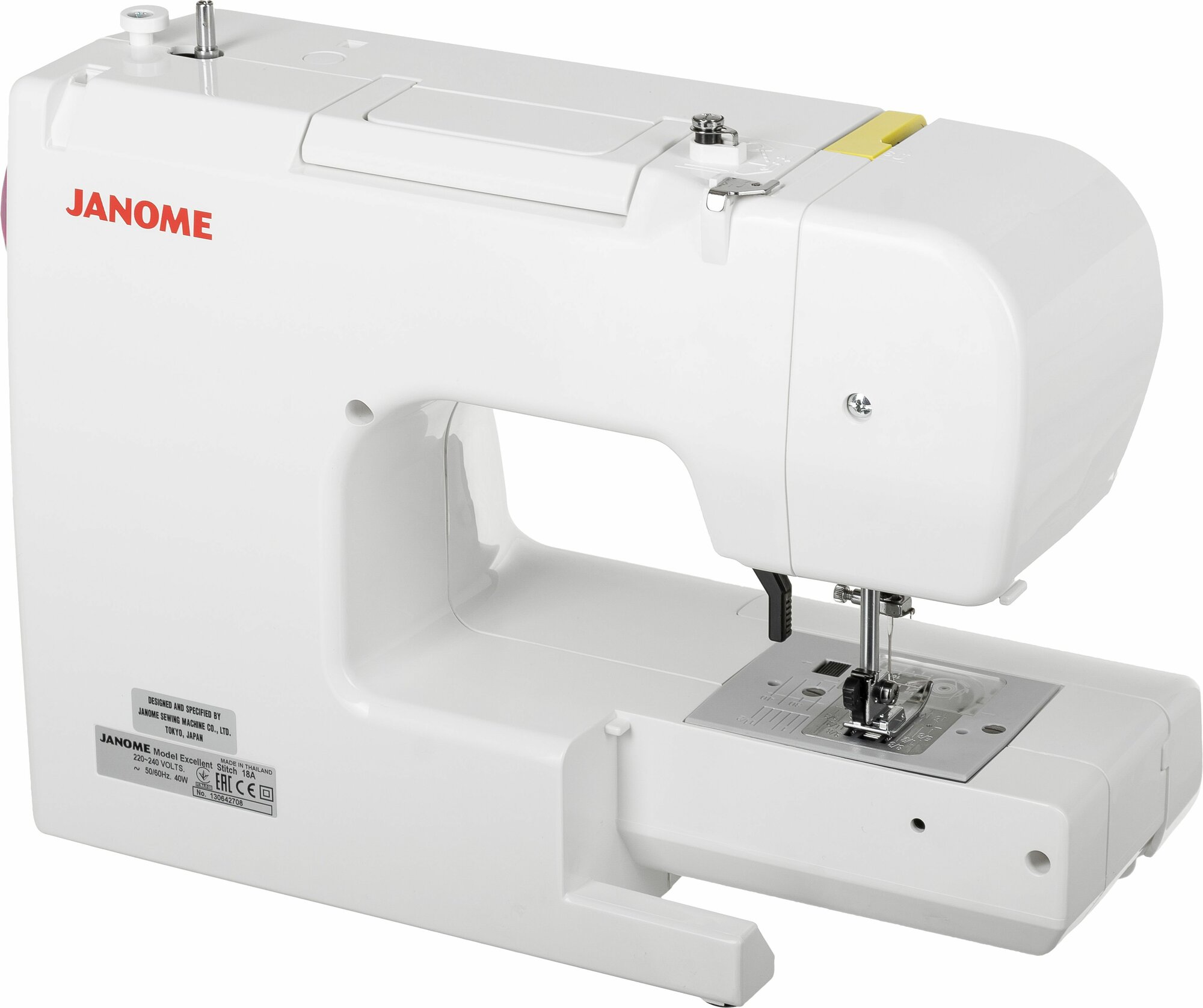 Швейная машина Janome Excellent Stitch 18A белый, Рукавная платформа, Нитевдеватель, Регулировка длины строчки, Реверс