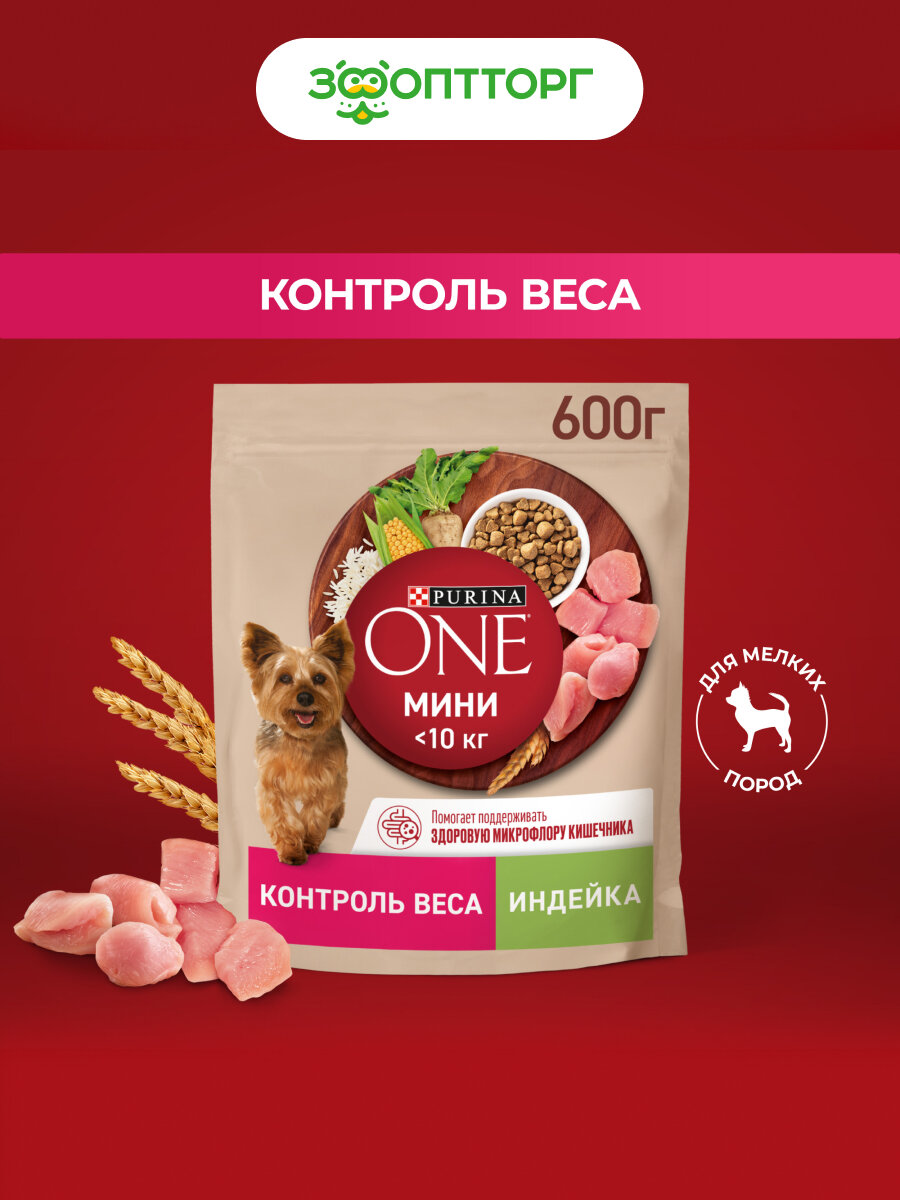 PURINA ONE мини контроль веса для взрослых собак маленьких пород с индейкой и рисом (0,6 кг)