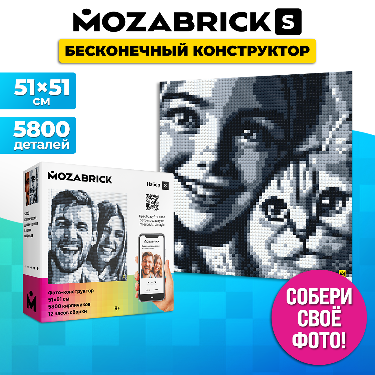 Фото конструктор MOZABRICK Color / мозаика из фотографии. Набор S (бесконечный фото-конструктор, по фото, конструктор их фотографии)
