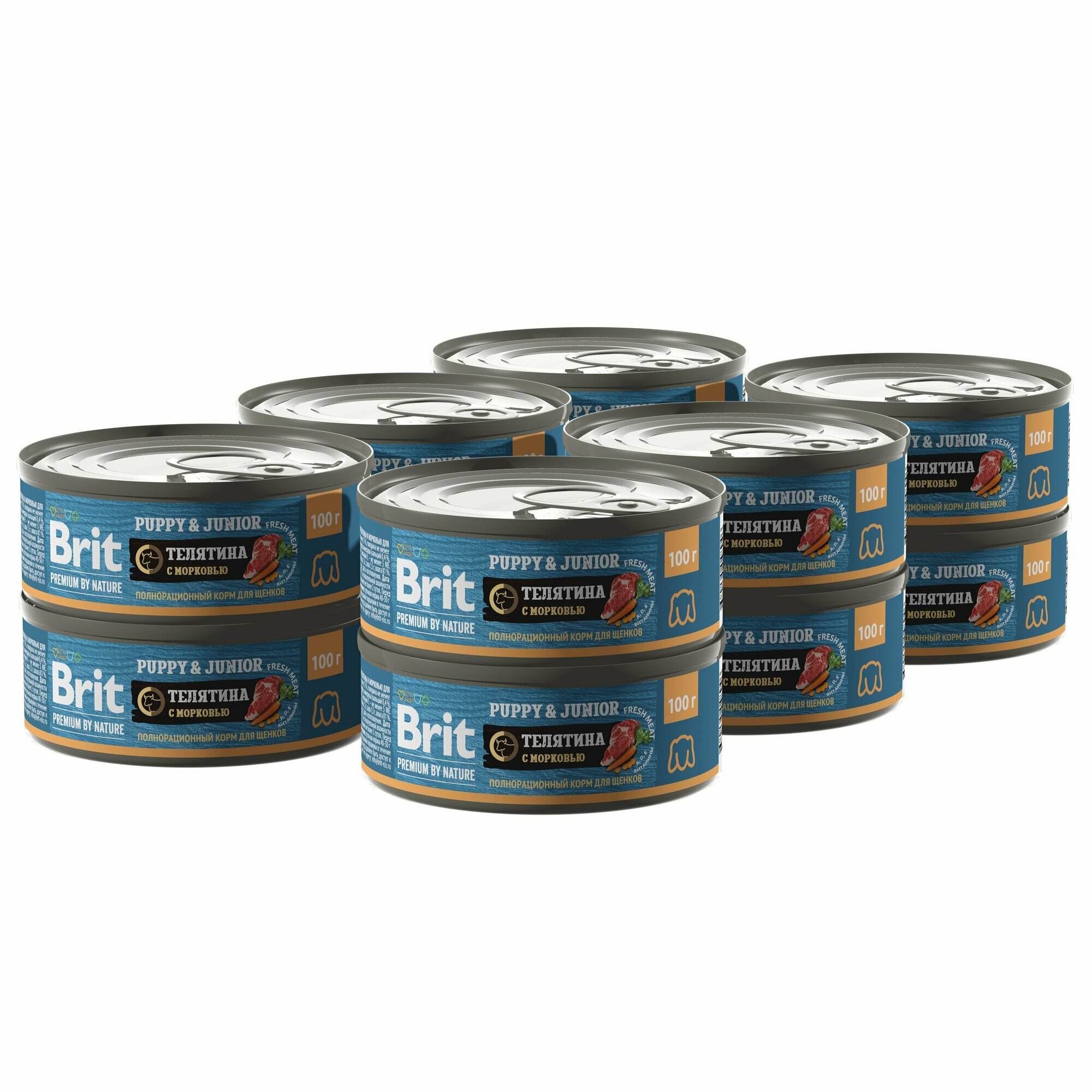 Brit Premium by Nature Корм консервированный с телятиной и морковью для щенков всех пород, 100гр, 12 штук