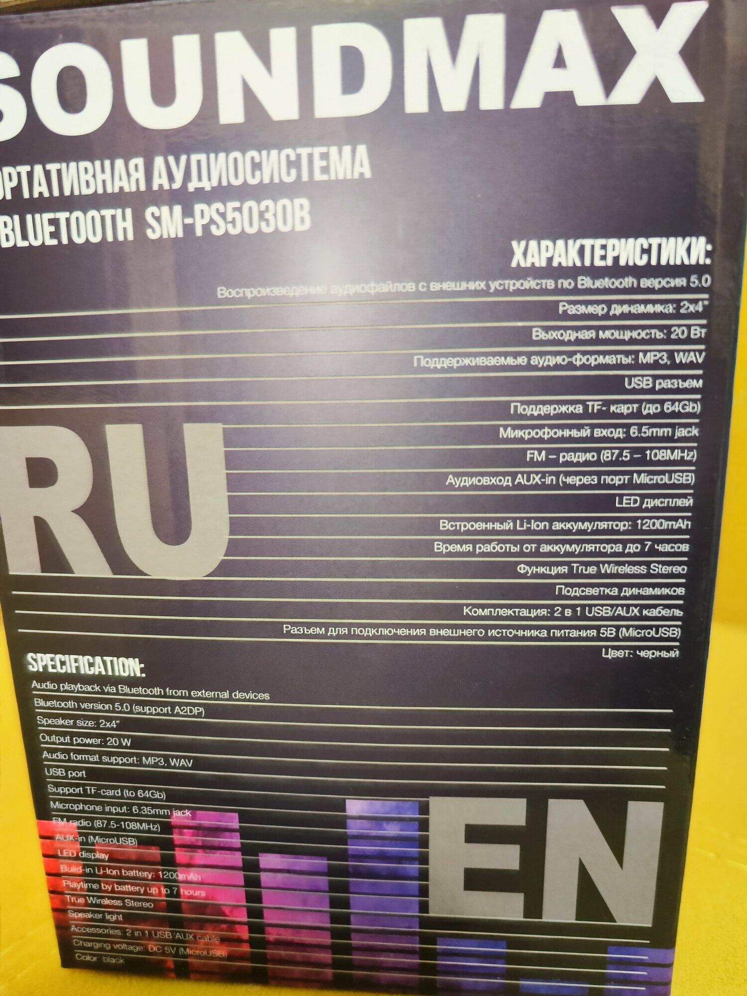 Ниже Вы можете прочитать отзывы на Портативная аудиосистема SOUNDMAX SM-PS5030B, 20Вт, black, ознакомится с подробными характеристиками, посмотреть интересные обзоры и фотографии на Портативная аудиосистема SOUNDMAX SM-PS5030B, 20Вт, black.