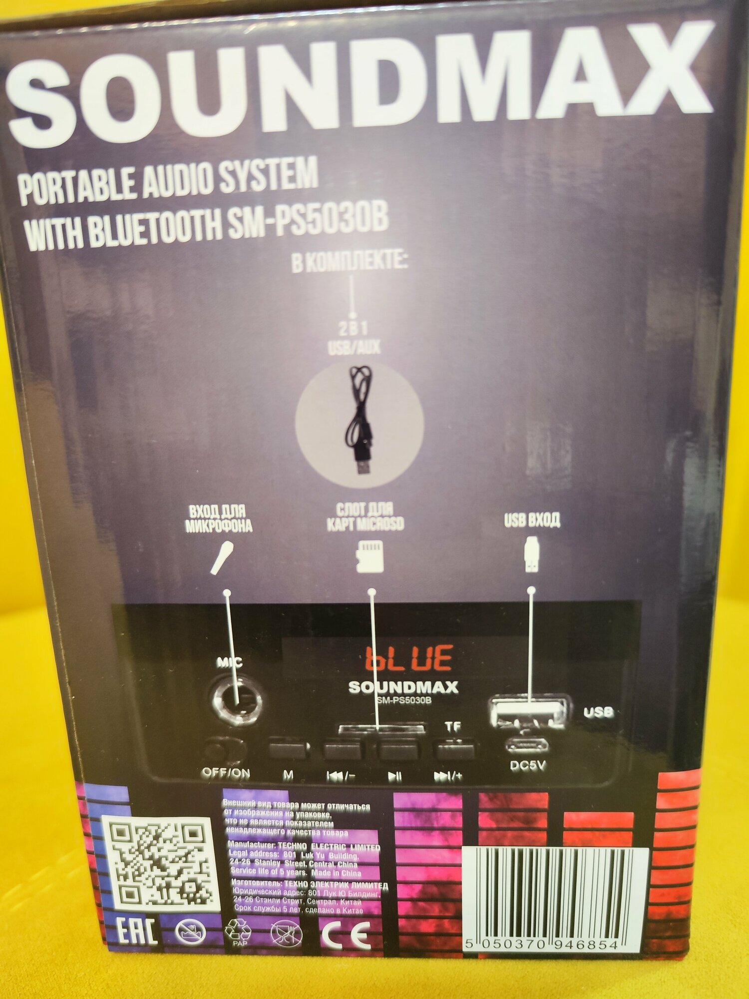 Портативная аудиосистема SOUNDMAX SM-PS5030B, 20Вт, black интересное: