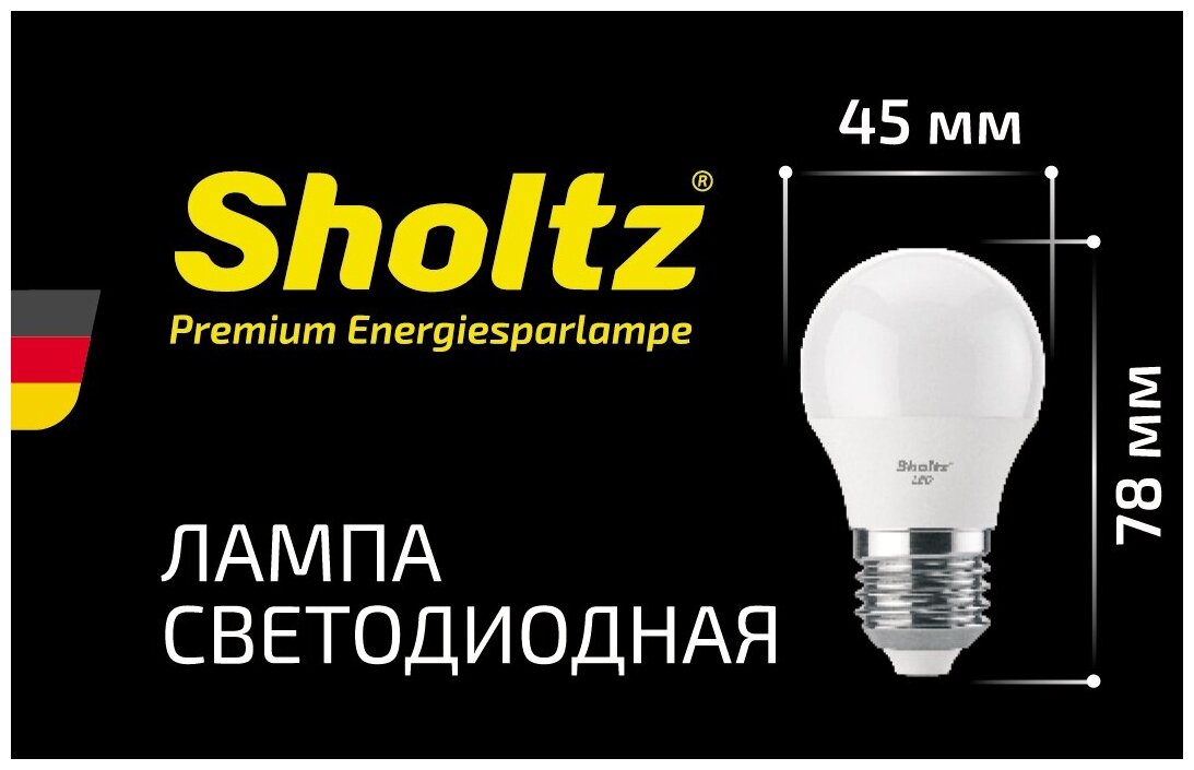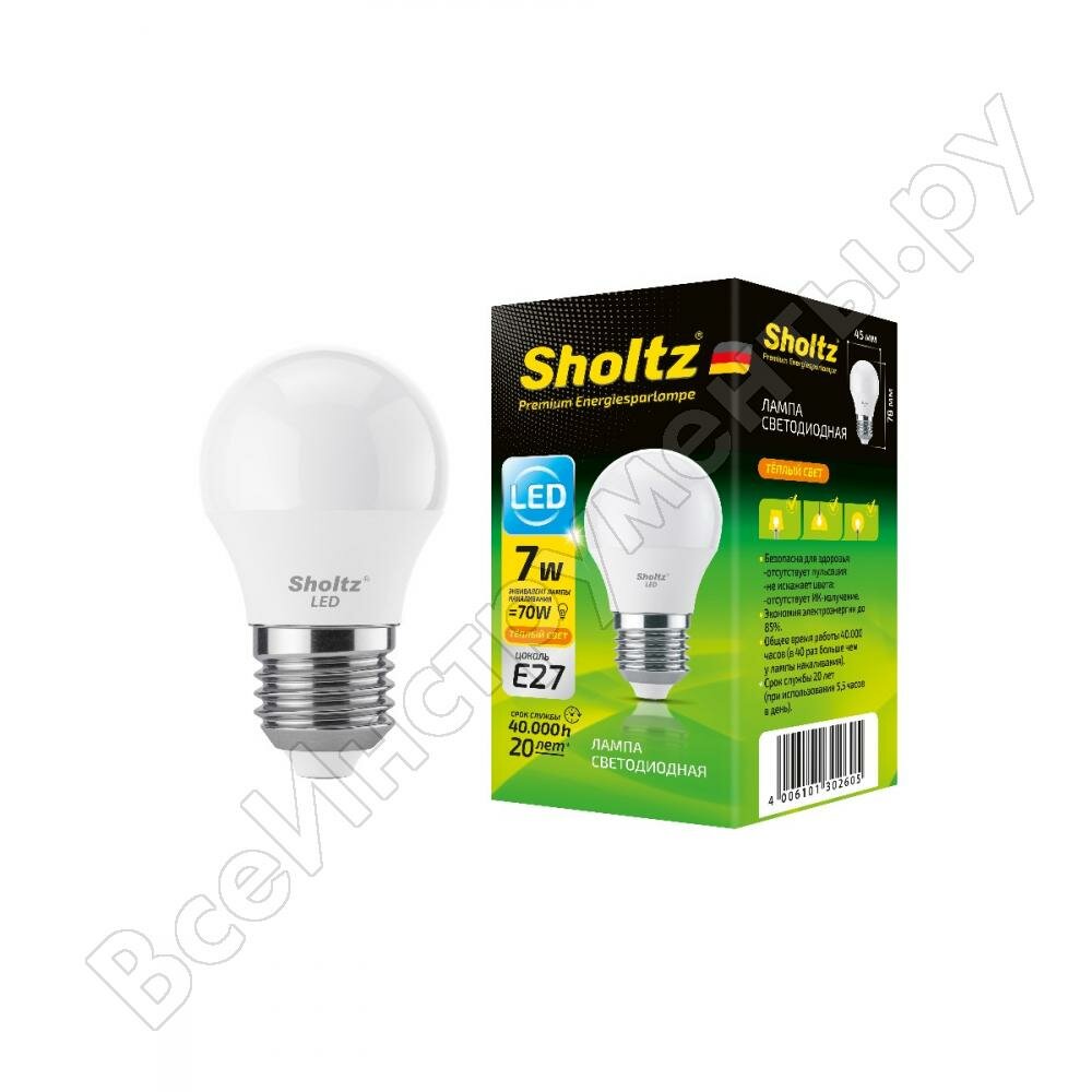 Светодиодная лампа Sholtz шар 7Вт E27 2700К G45 220-240В пластик интересное: