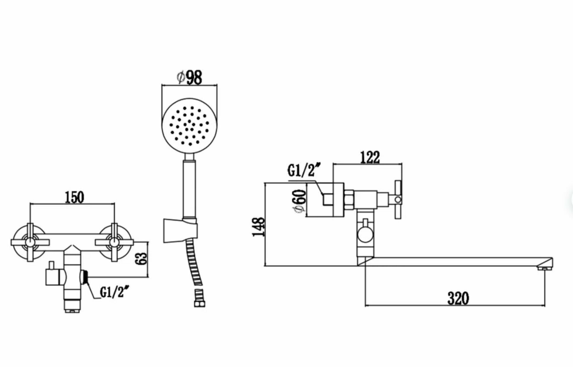 | Дополнительная информация | Смеситель для ванны с крестовыми ручками |