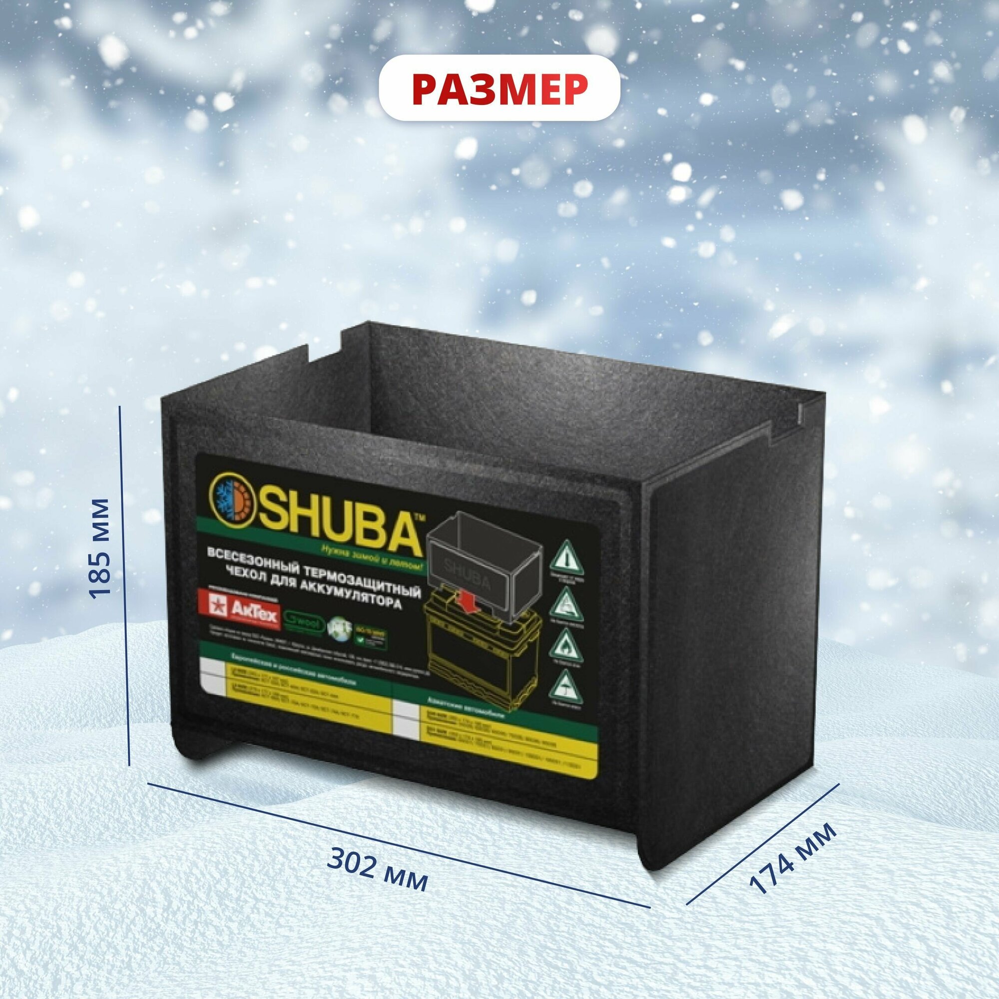Всесезонный термозащитный чехол для аккумулятора автомобиля SHUBA D31, термокейс, утеплитель, чехол на акб авто 302x174x185 интересное: