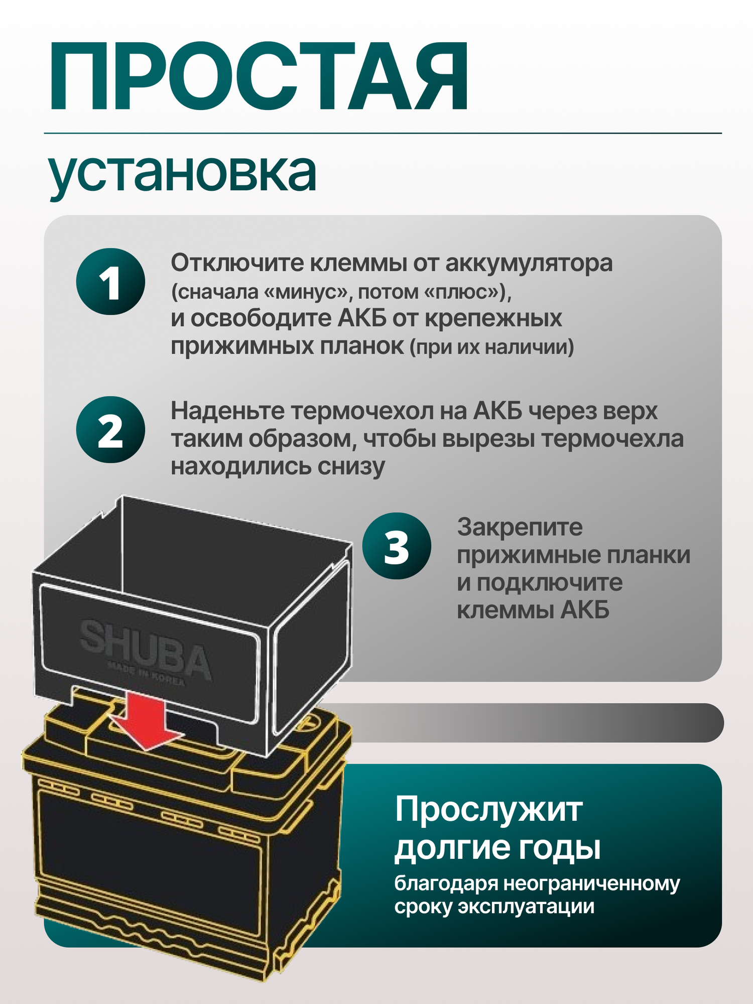 Всесезонный термозащитный чехол для аккумулятора автомобиля SHUBA B24, термокейс, утеплитель, чехол на акб авто 238x128x185 интересное: