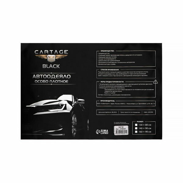 Автоодеяло для двигателя black, 160 x 90 см, плотное интересное: