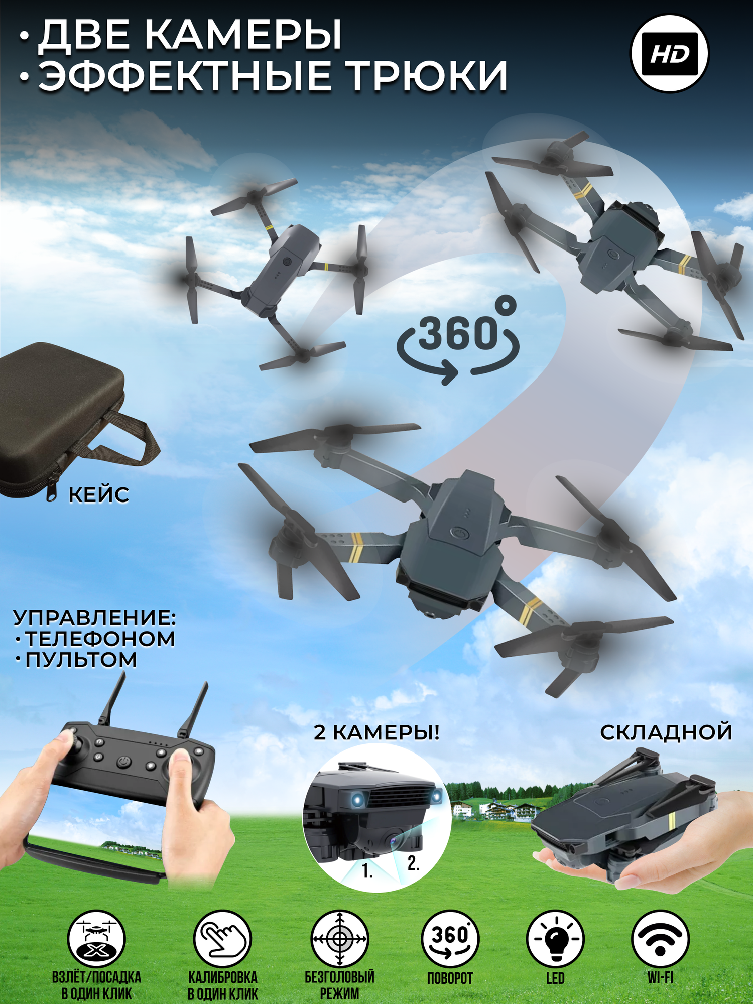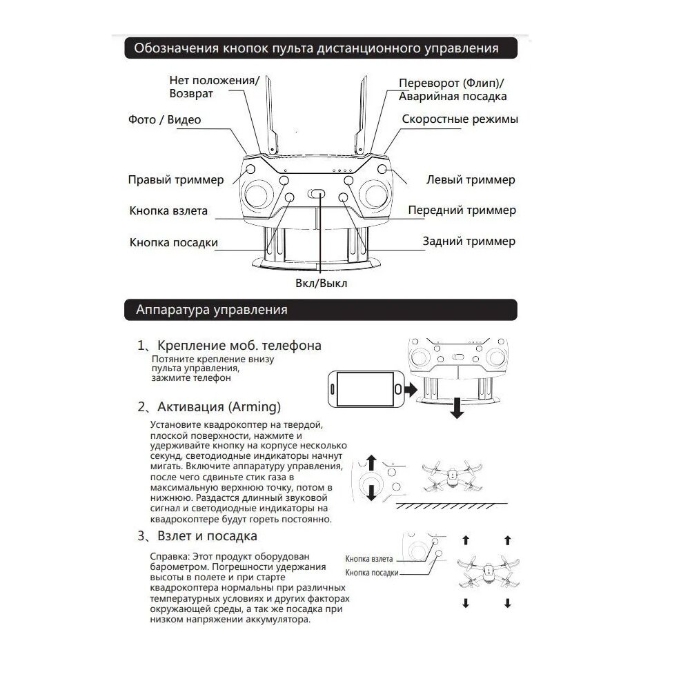 | Особенности | защита винтов / пульт управления в комплекте / складная конструкция |