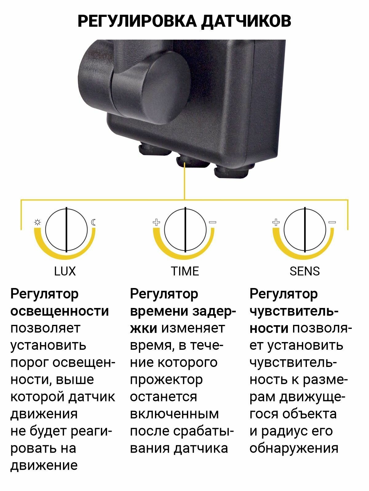 | Дополнительная информация | регулятор времени работы света, регулятор чувствительности к размерам объекта и радиусу его обнаружения |