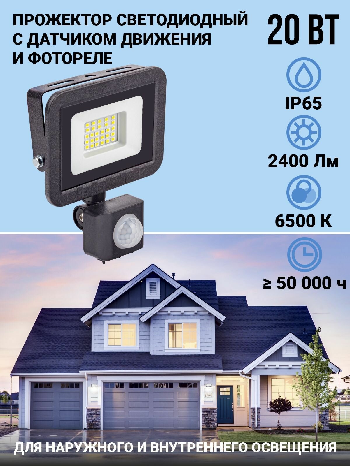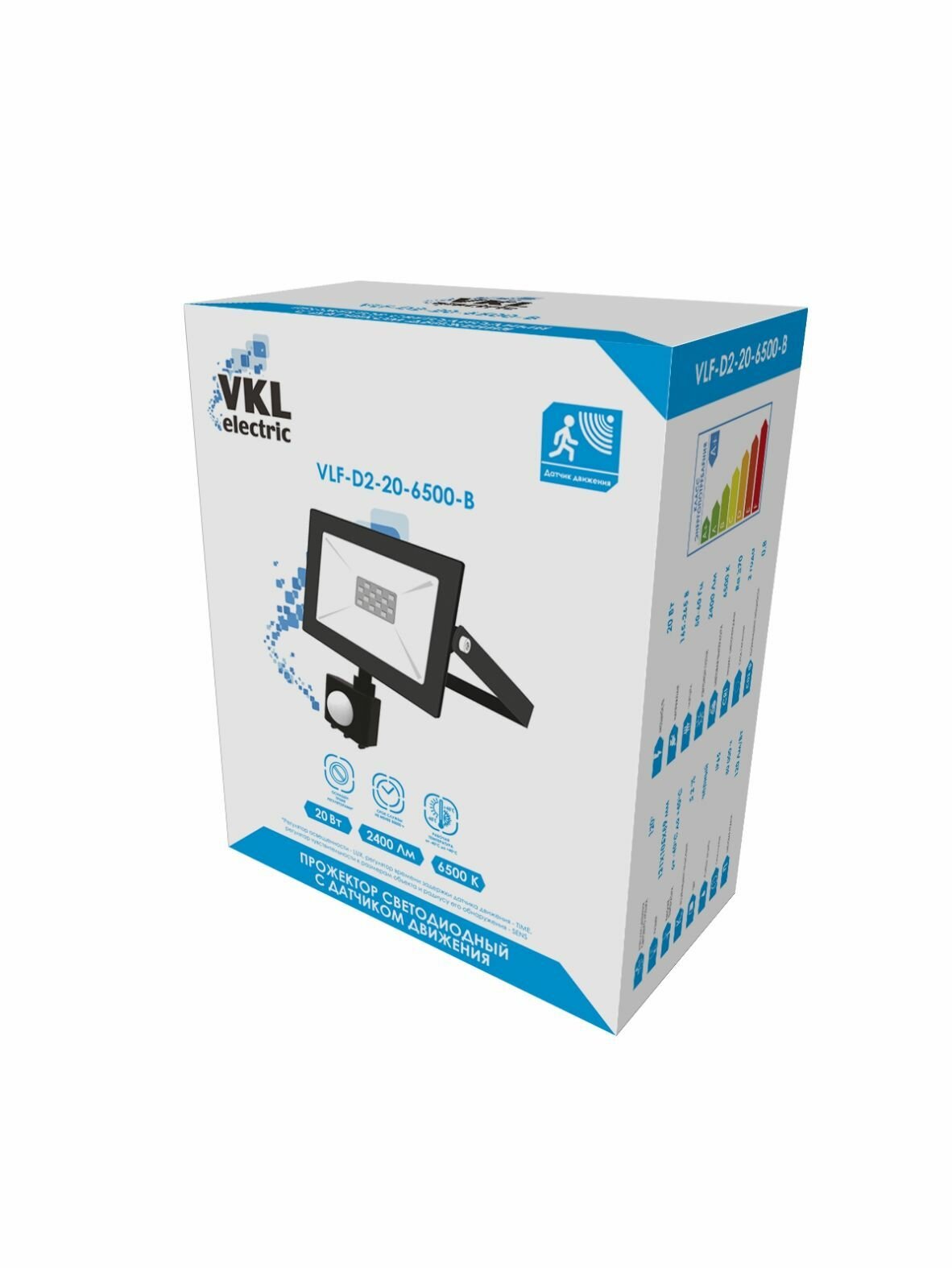 Прожектор LED с дат.движ.20W VLF-D2-20-6500-B 6500К 1300Лм 220V IP65 (руч.рег)чер.VKL electric интересное: