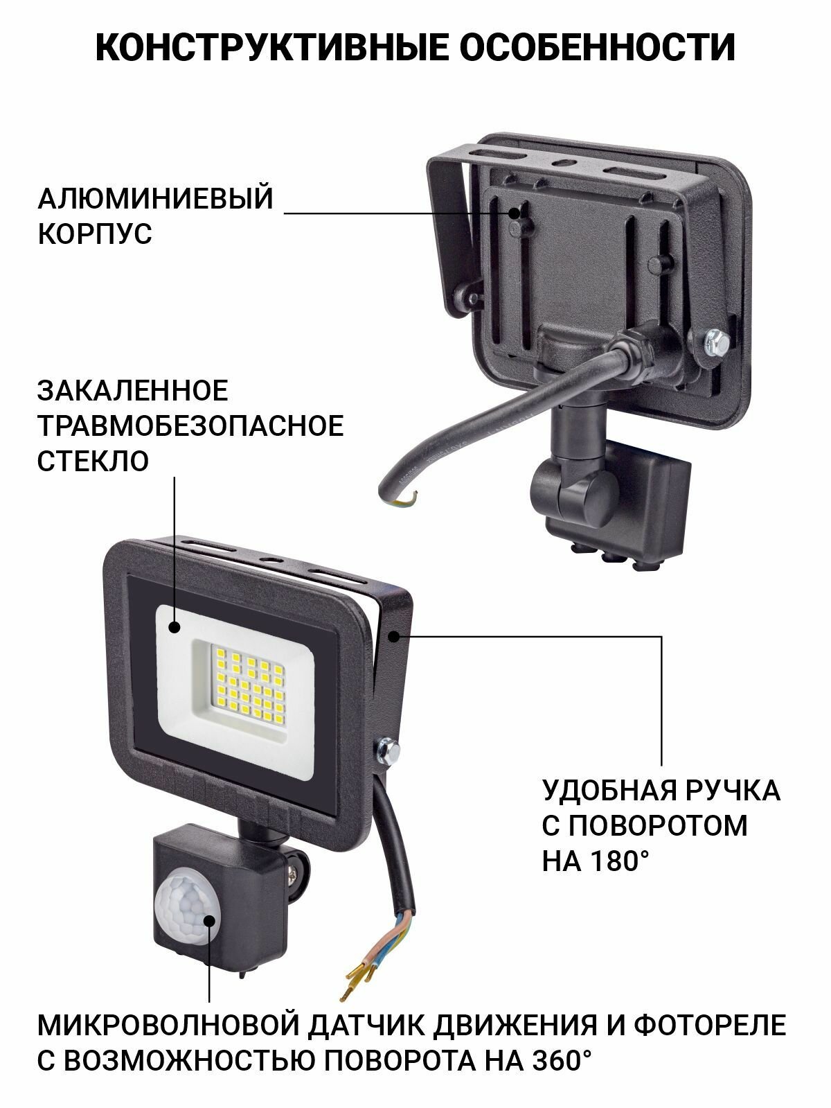 Прожектор светодиодный с датчиком движения 20 Вт REXANT 605-008