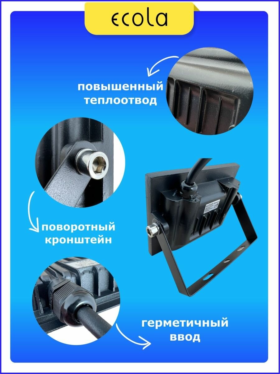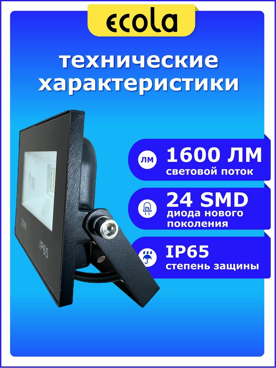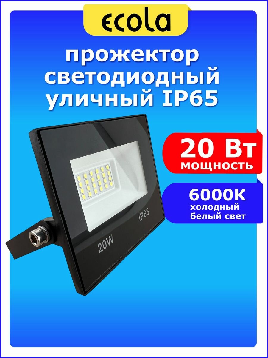 Ecola прожектор св/д 20W(1600lm) 6000 6K 140x120x30 черный IP65 JPBD20ELB интересное: