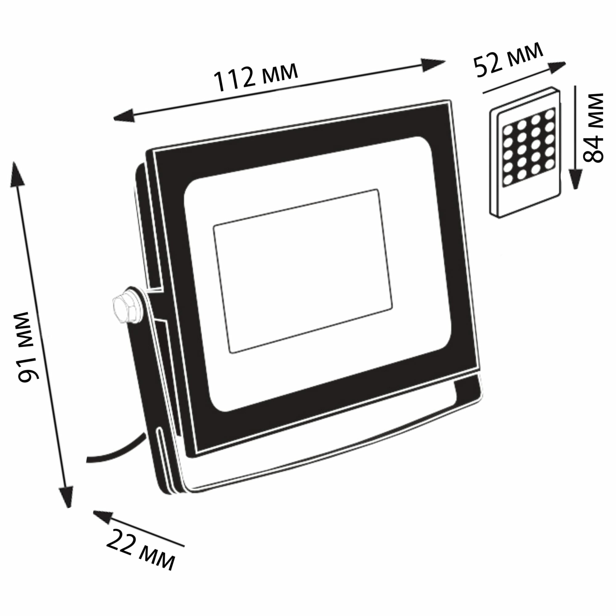 Прожектор космос 20Вт, 1600Лм, IP65, 6500K, Super-Slim