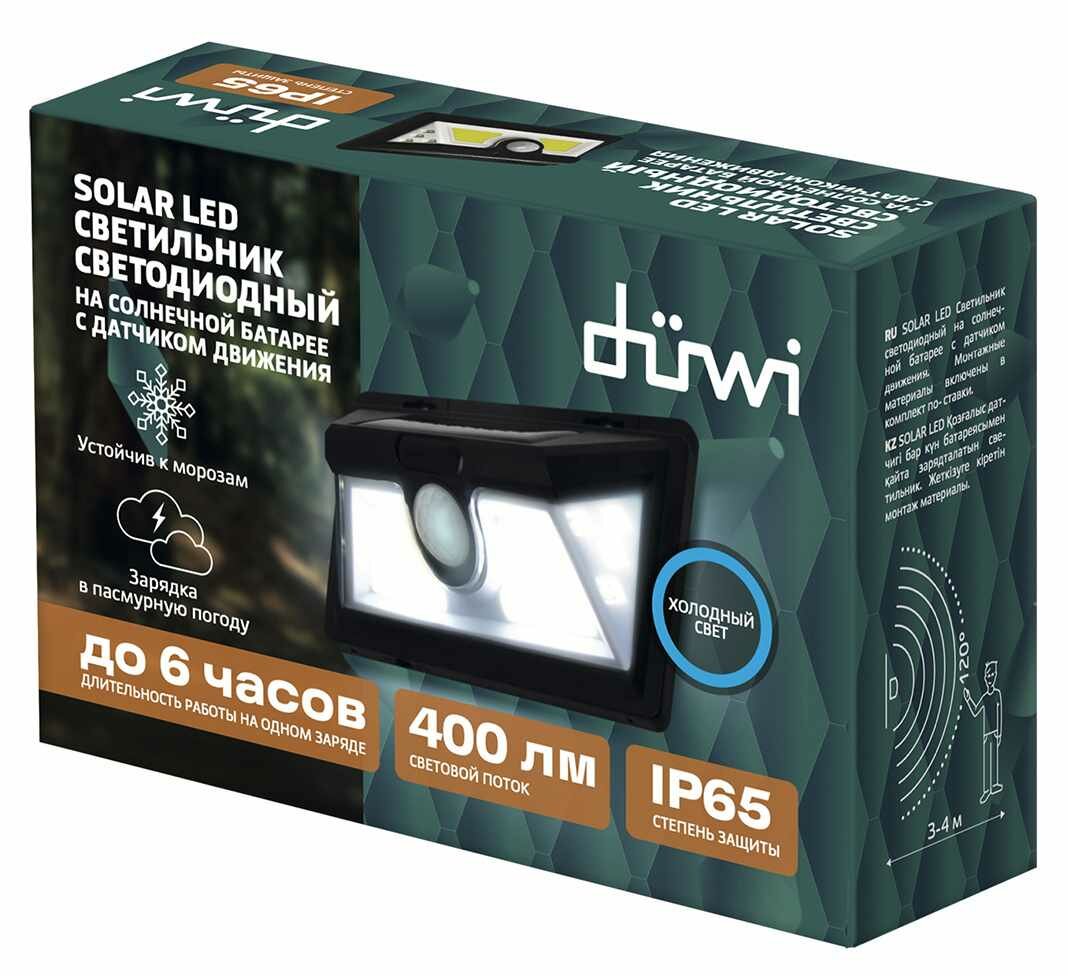 Светильник светодиодный уличный Duwi Solar LED на солнечных батареях 11Вт 6500К 400Лм IP65 датчик движения черный интересное: