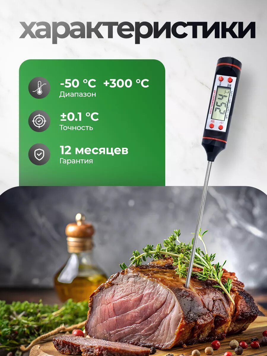 Кулинарный термометр электронный со щупом из нержавеющей стали, термометр для еды, мяса, вина, провод 1 метр / таймер кухонный