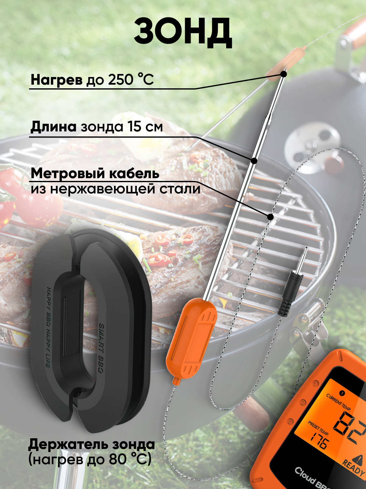 | Дополнительная информация | Доп. опции термощупа - цифровой экран; магнит для крепления; комплект из 6 щупов. Управление с телефона через Bluetooth |