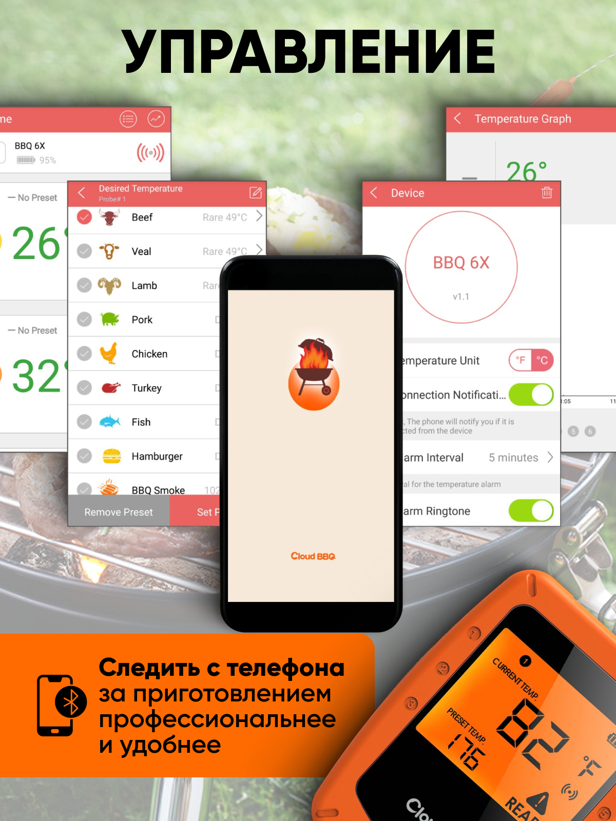 Термощуп кулинарный, градусник для еды с bluetooth, 6 зондов