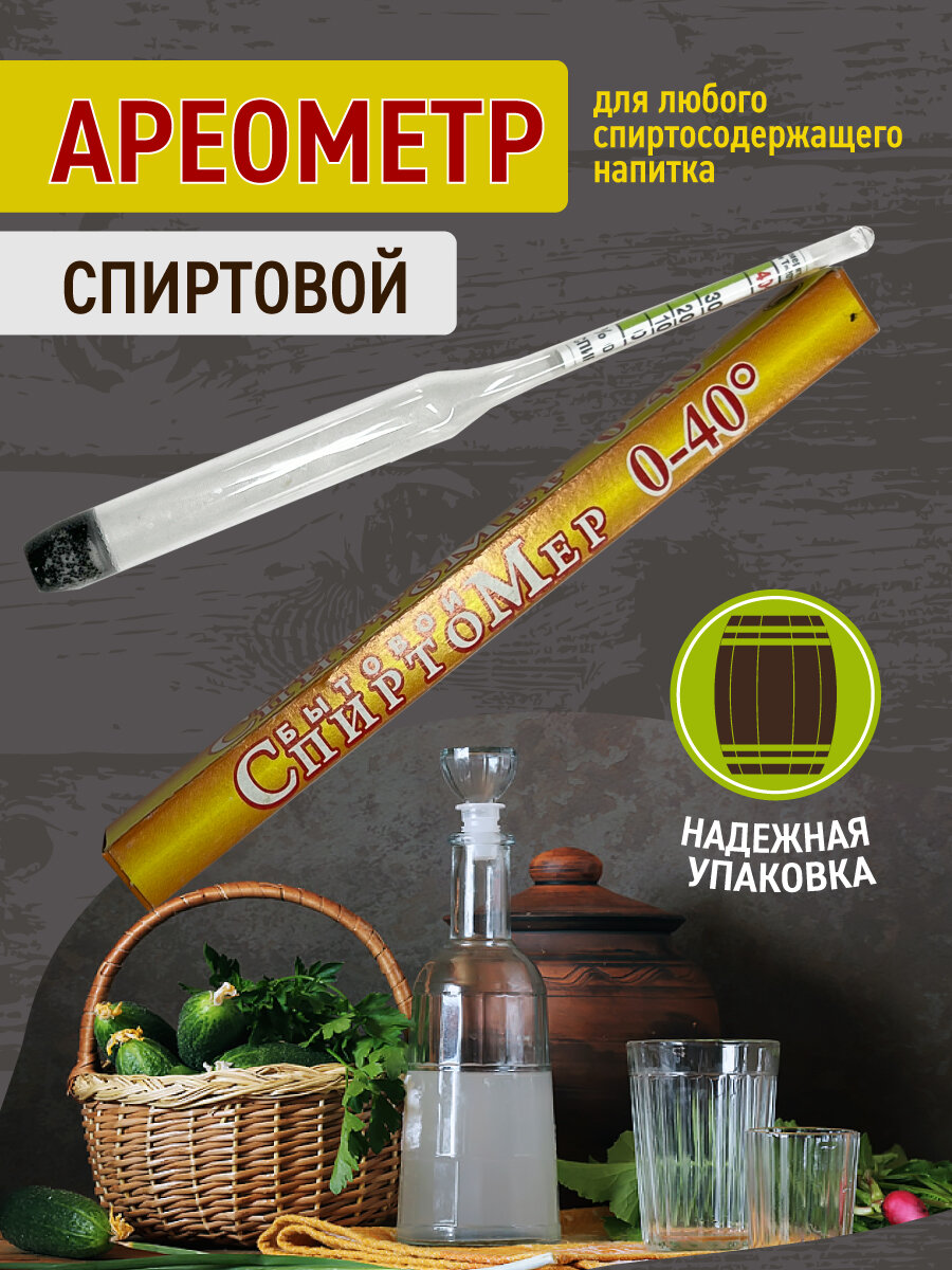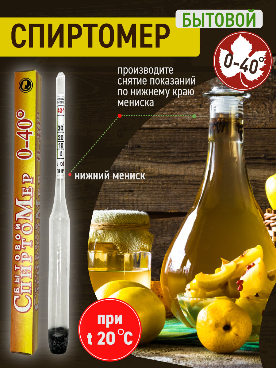 | Дополнительная информация | Чтобы правильно ареометром проверить градусы, необходимо налить немного жидкости в емкость 200 мл. Нормальная температура +20°С. Слегка ее помешивая, требуется опустить ареометр в емкость и дождаться пока он успокоится. Далее снимают показания. Не содержит ртути |