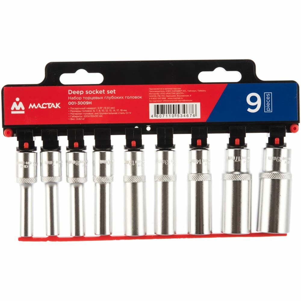 Набор торцевых глубоких головок 3/8", 6-19 мм, 9 предметов мастак 001-3009H интересное: