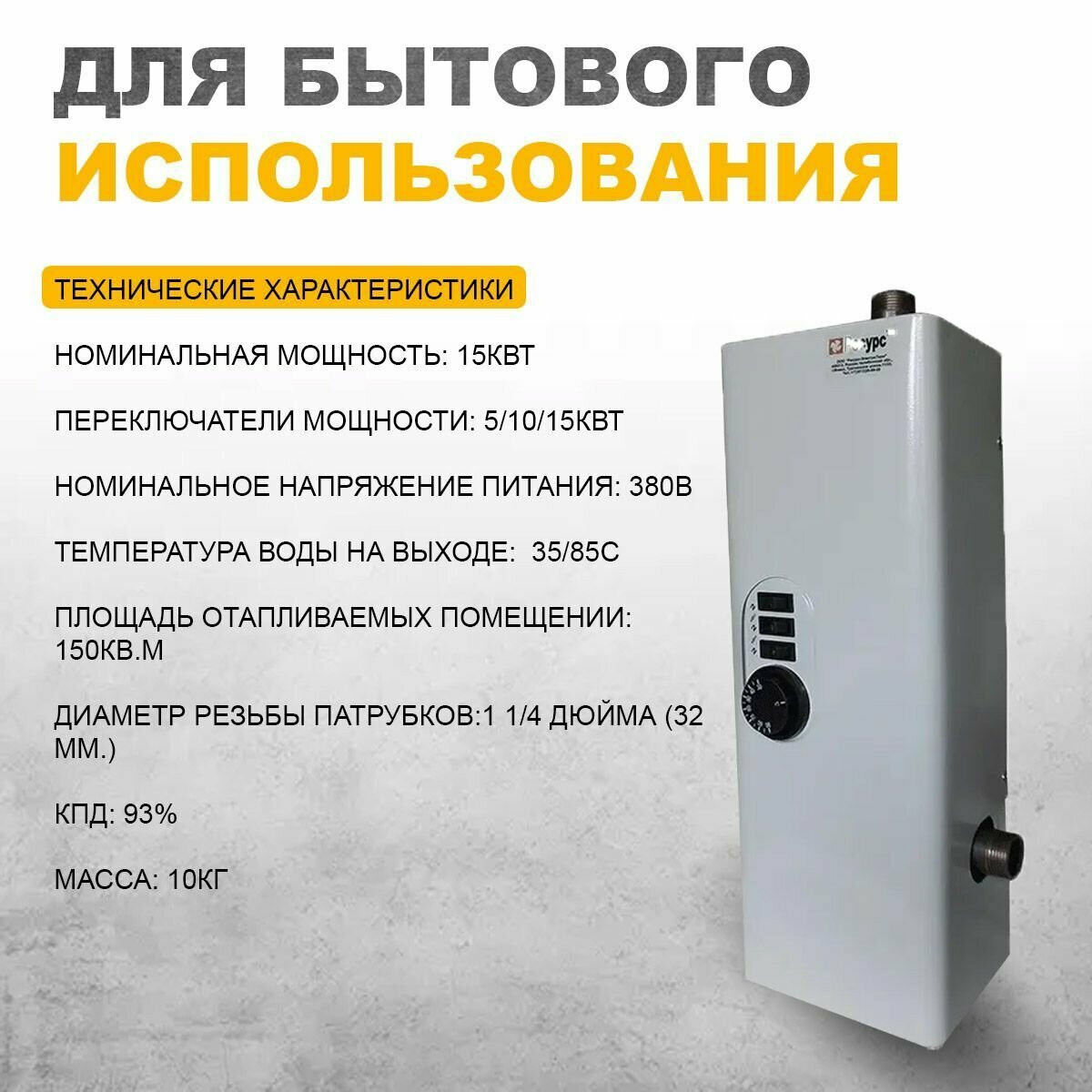 | Макс. тепловая мощность | 15 кВт |