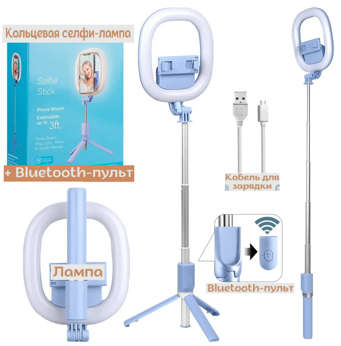 Монопод трипод с кольцеовй лампой и LED подстветкой, небесно-голубой интересное:
