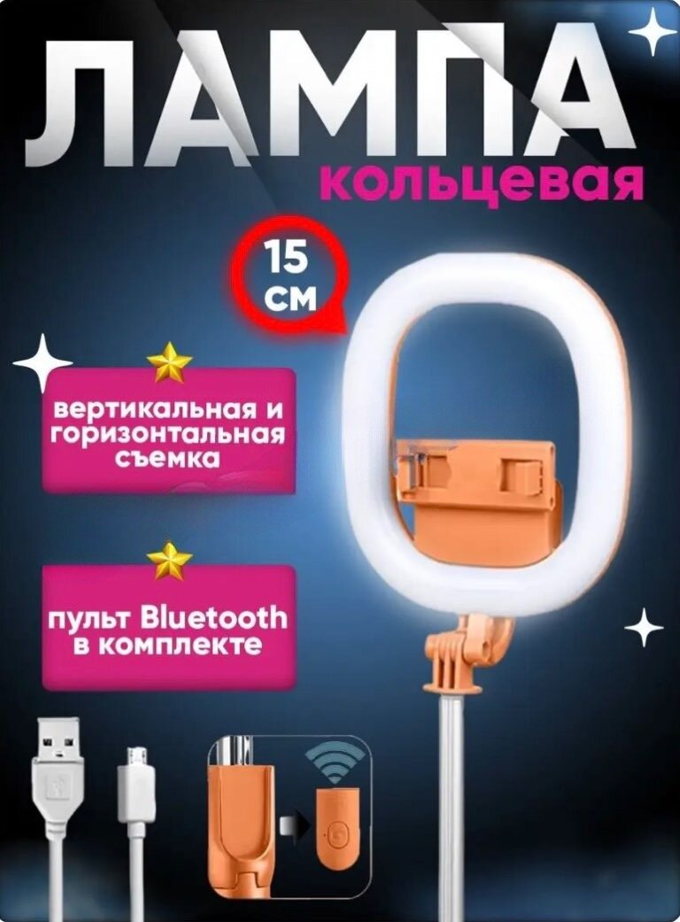 Монопод трипод с кольцеовй лампой и LED подстветкой, оранжевый интересное: