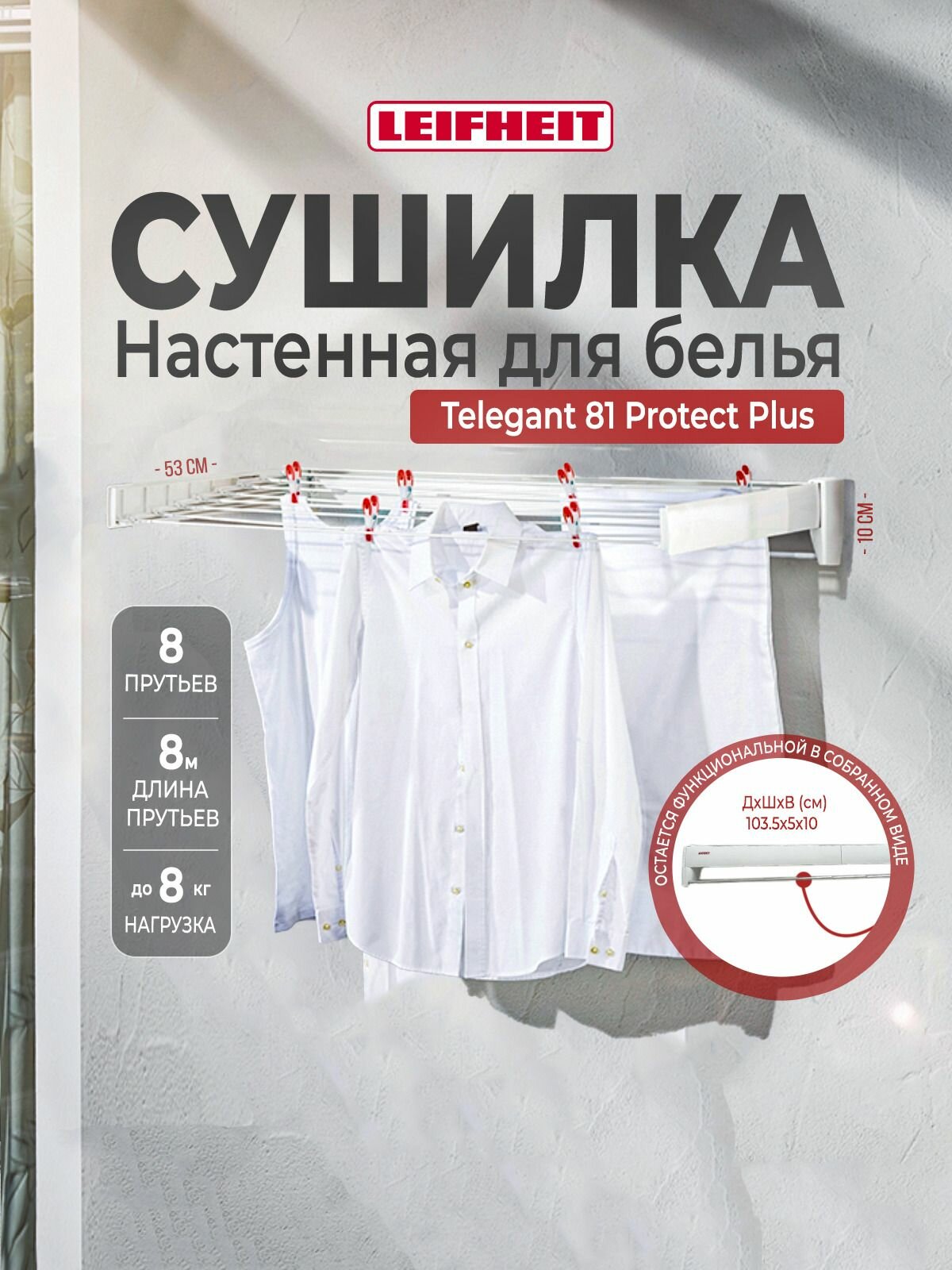 СохранитьСушилка для белья Leifheit настенная Telegant 81 Protect Plus, белый интересное: