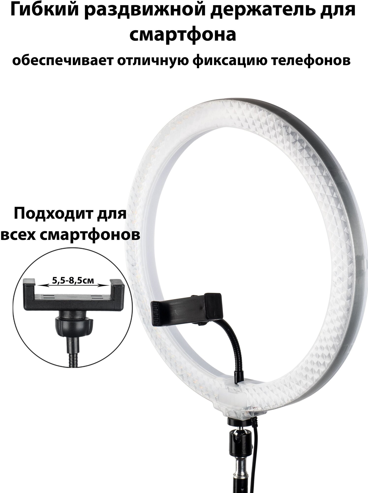 Кольцевая двухсторонняя LED-лампа 36 см RGB Кристалл + штатив 2 м + Bluetooth-пульт + держатель для телефона "Селфи кольцо CRYSTAL RING FILL LIGHT" интересное: