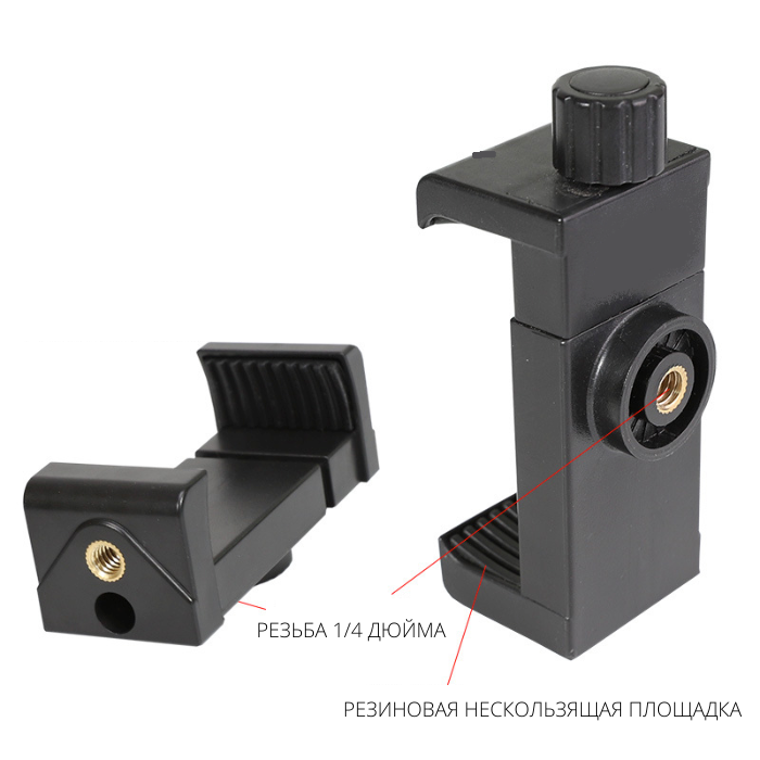 Крепление держатель для телефона (смартфона) шириной 55-100мм на штатив или монопод с фиксатором интересное: