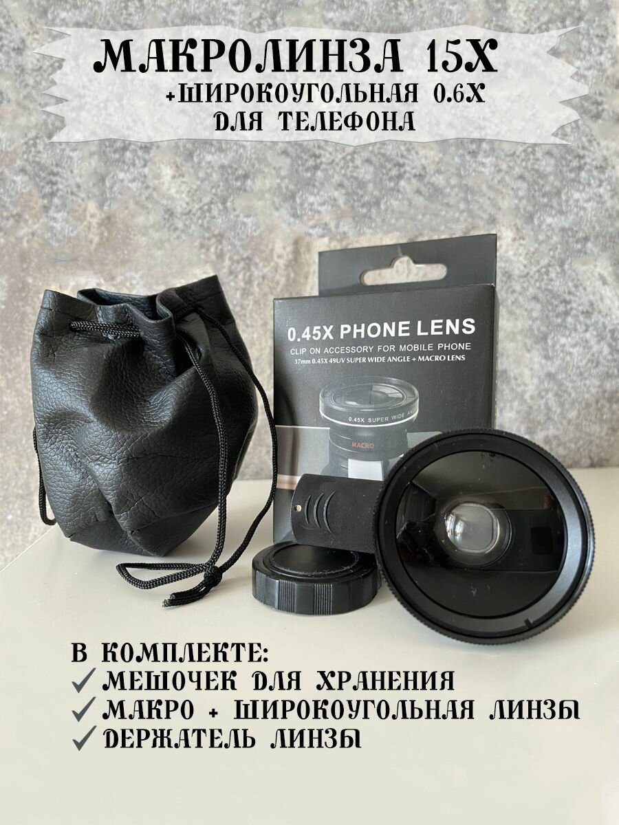 Макролинза 15х + Широкоугольная линза для телефона интересное:
