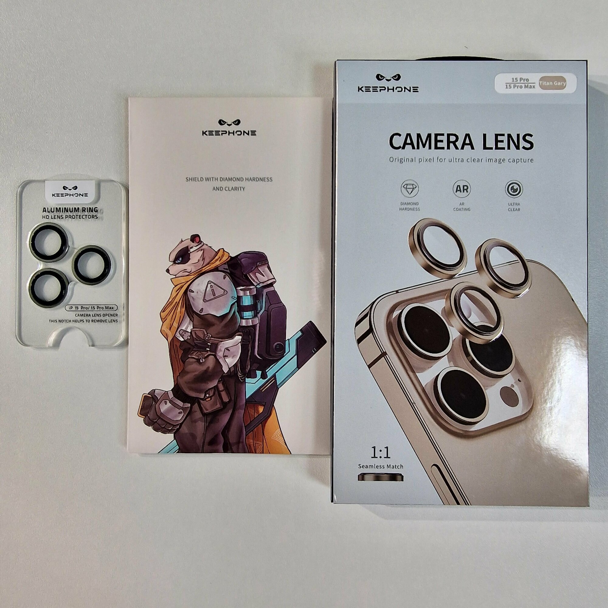 Защитные Линзы Keephone на камеру для телефона Iphone 15 Pro / 15 Pro Max, из алюминиевого сплава, camera lens, Titan Gary (натуральный титан) интересное: