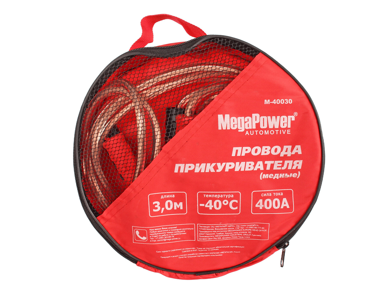 Провода для прикуривания 400A 3.0м, MEGAPOWER M40030 (1 шт.)