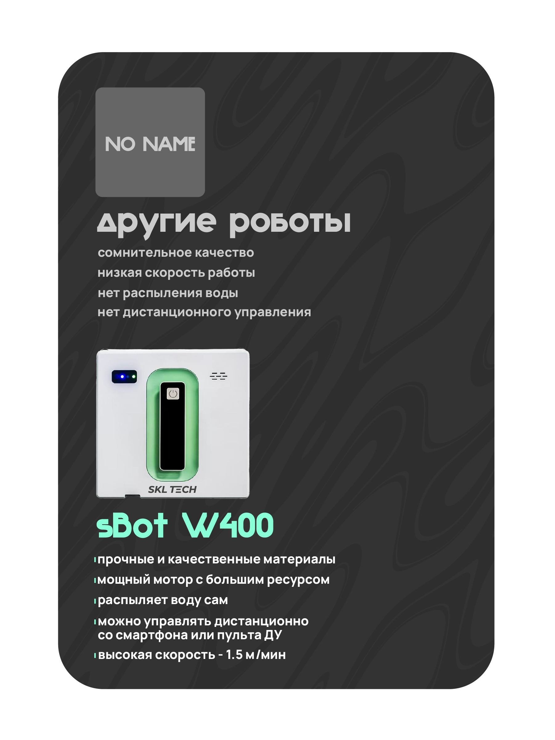 Ниже Вы можете прочитать отзывы на Робот-стеклоочиститель sBot W400, ознакомится с подробными характеристиками, посмотреть интересные обзоры и фотографии на Робот-стеклоочиститель sBot W400.