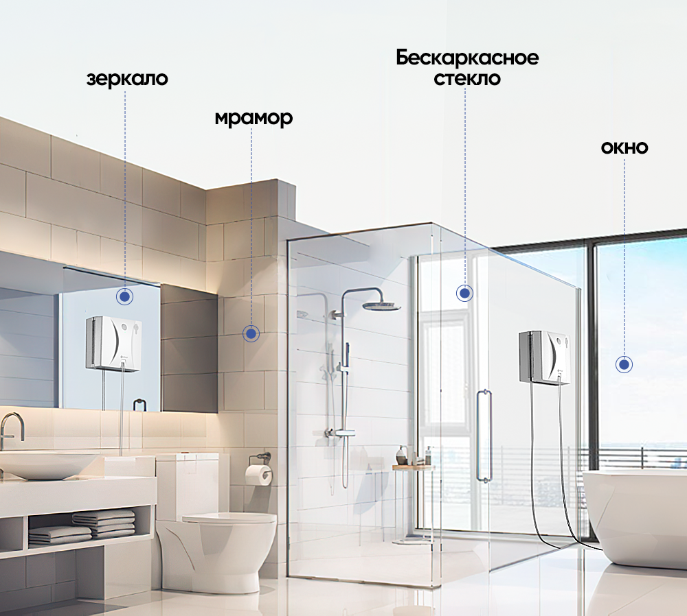| Особенности | автоматическая остановка / автоматическое определение зоны уборки / звуковая индикация / мойка безрамных поверхностей / обход препятствий / светодиодная индикация |