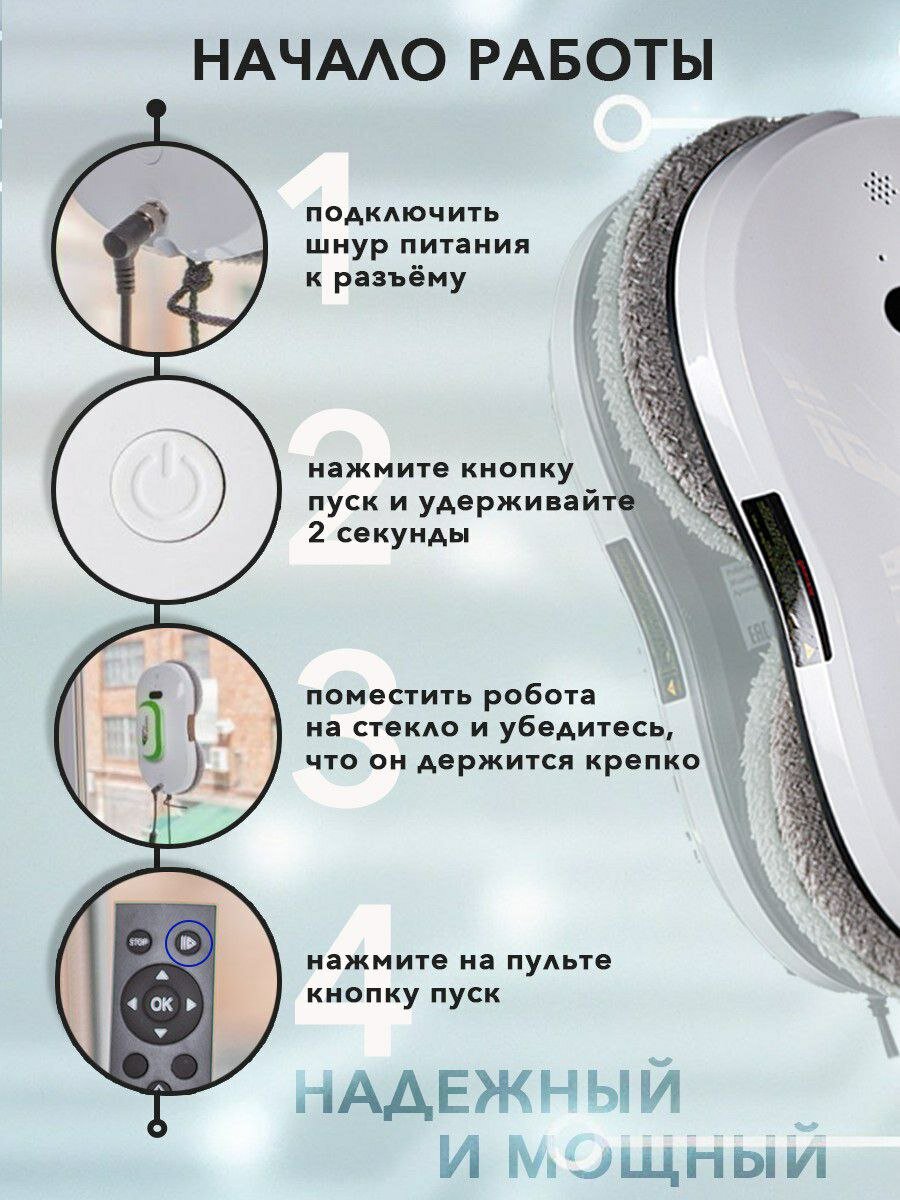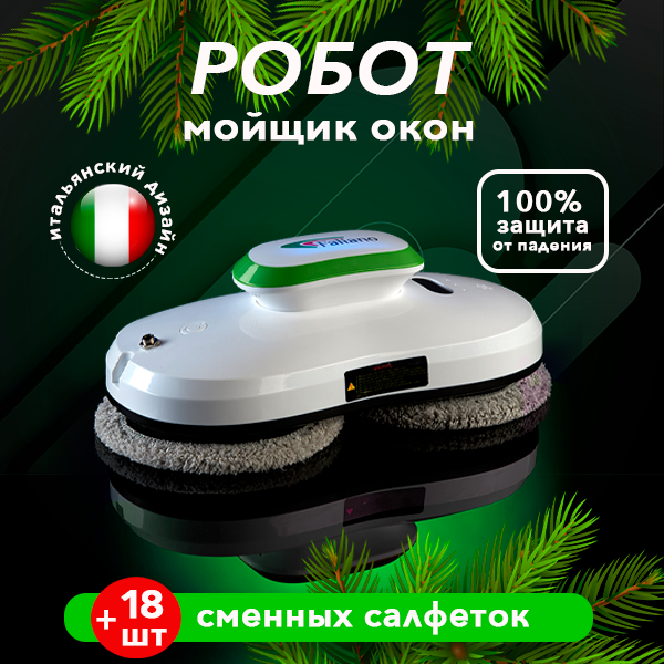 Робот мойщик окон Faliano с распылением воды с двух сторон, датчиком обнаружения края, 20 салфеток в комплекте